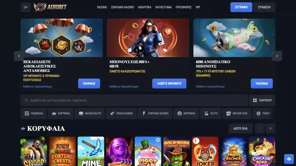 Στο καζίνο Aerobet Ελλάδα, μπορείτε να αλλάξετε τη διεπαφή στα Ελληνικά και να παίζετε σε EUR χωρίς επιπλέον βήματα. Το Aerobet λειτουργεί σε μια σύγχρονη πλατφόρμα με πολλά γνωστά στούντιο, ώστε να μετακινείστε ανάμεσα σε κουλοχέρηδες, live παιχνίδια και τζακπότ από ένα πορτοφόλι. Το Aerobet διατηρεί επίσης τους ελέγχους λογαριασμού σε ένα σημείο, συμπεριλαμβανομένων ορίων κατάθεσης και εργαλείων time-out, ώστε να ορίσετε τον ρυθμό σας από την πρώτη μέρα.